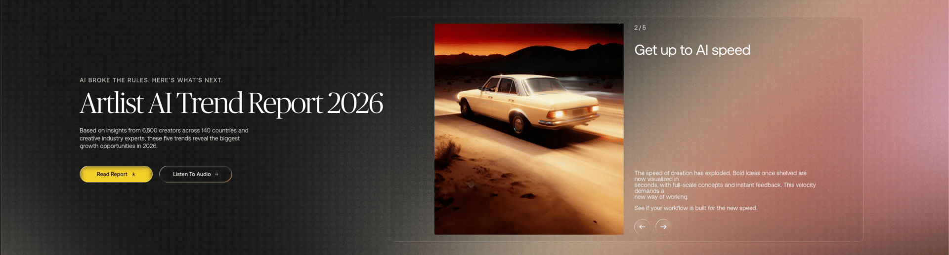 Artlist just released their annual trend report—and they captured my exact thoughts on how AI is going to change the future for creatives. Read their 5 (beautifully designed) AI trends for 2026 here.